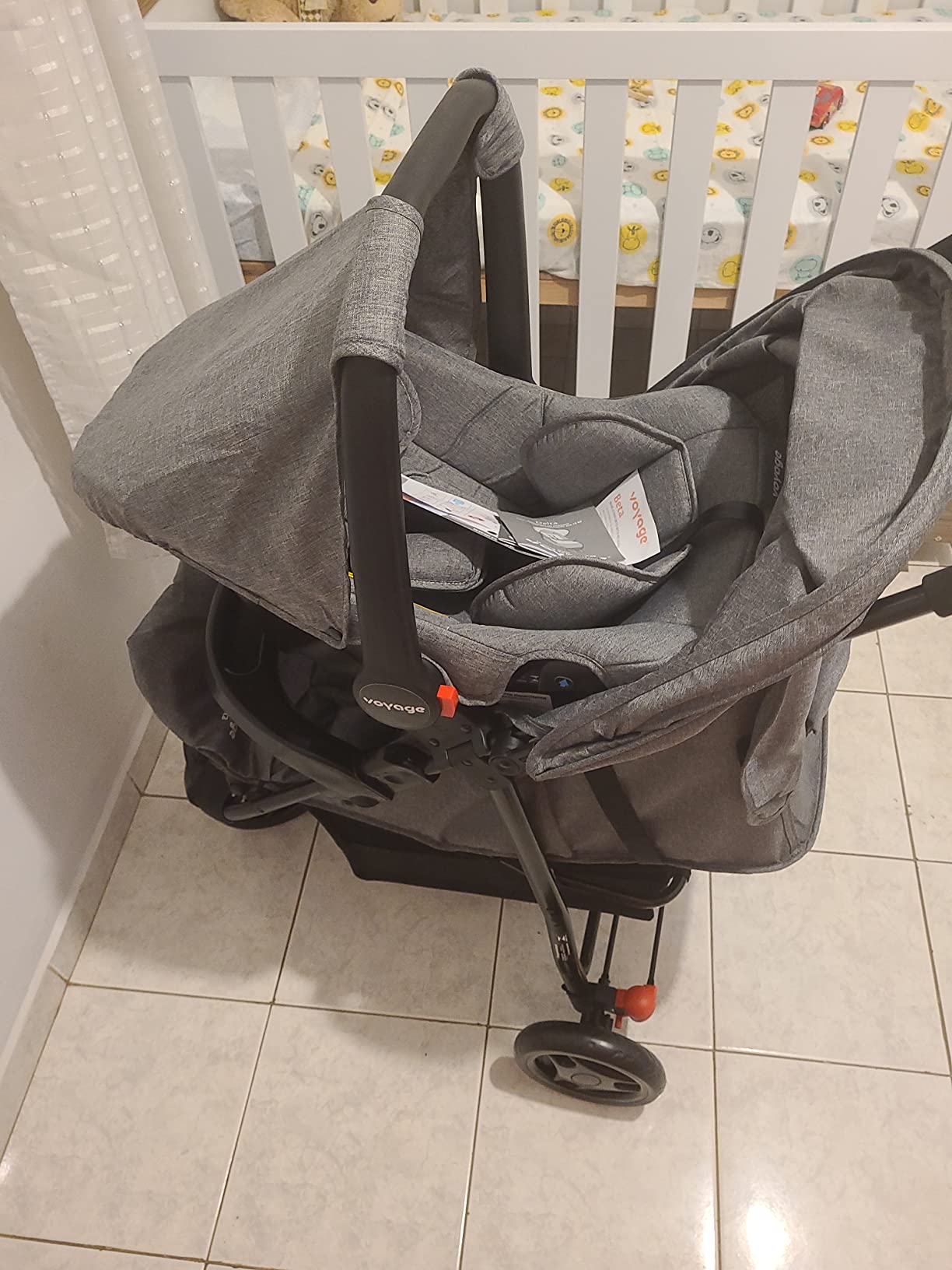 Este carrinho de bebê com bebê conforto da Voyage também tem a vantagem de permitir a regulagem da altura do apoio para os pés, o que é útil à medida que o bebê cresce. O bebê conforto possui alça ajustável, capa removível e lavável, encosto com duas posições de ajuste, cinto de segurança de 3 pontos e almofada redutora para recém-nascidos.